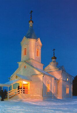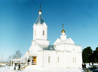 возведенный в 1897 году. Выстроенная на высоком берегу поймы реки Оби, она главенствует над селом и является подлинным украшением этих просторов. Небольшая по размерам, но удивительно гармоничная и светлая церковь радовала глаза прихожан. Отобранная от верующих, церковь в течение долгих лет служила клубом и пребывала в плачевном состоянии. В начале 90-х годов возникла идея реставрировать храм и вернуть его православным. Во время работы под полом была обнаружена церковная книга XIX века. Ею оказался Типикон (Устав), выполненный в Москве в 1877 году. Вероятно, последний священнослужитель Тундринского храма во время лихолетья спрятал ее до лучших времен. Храм восстановлен администрацией Сургутского района Ханты-Мансийского автономного округа, как памятник деревянного зодчества и 20 декабря 1998 года освящён епископом Тобольским и Тюменским Димитрием. Во вновь открытом храме проводятся богослужения, окормляет верующих иерей Петр Егоров. |
